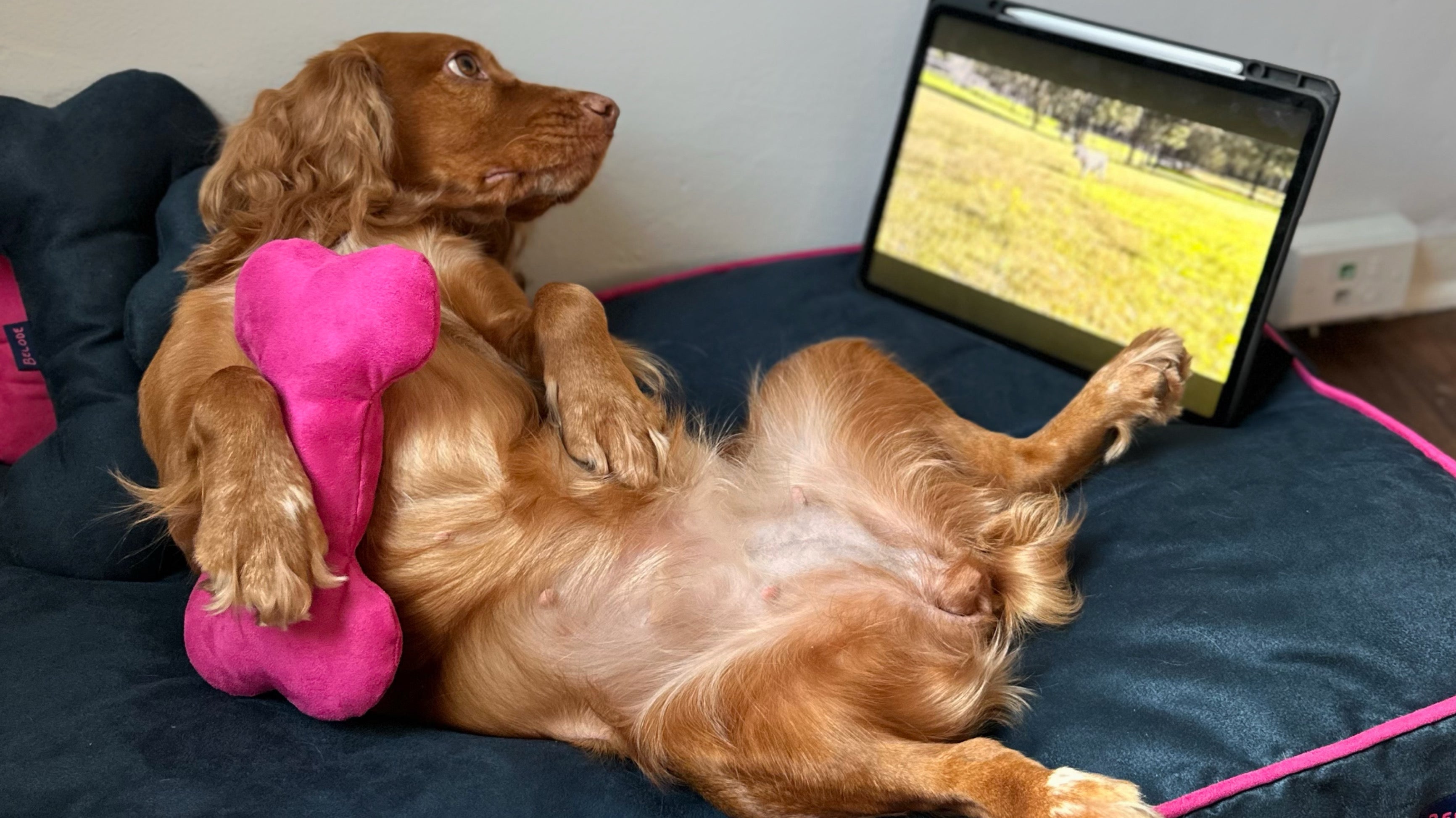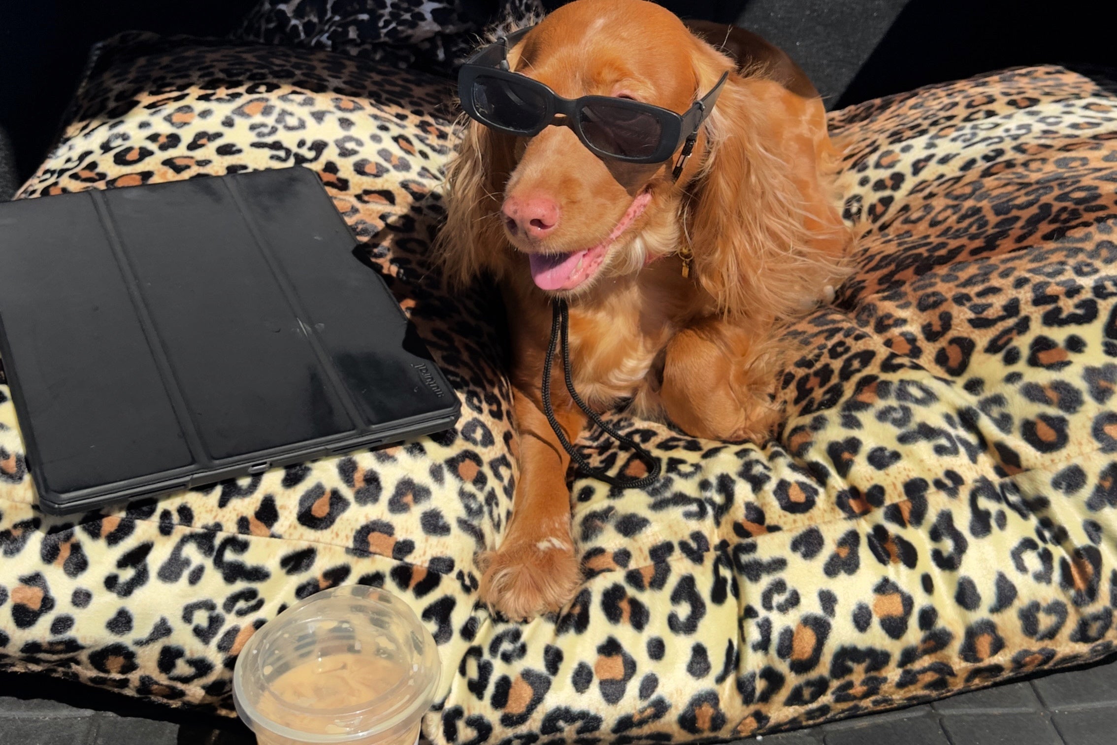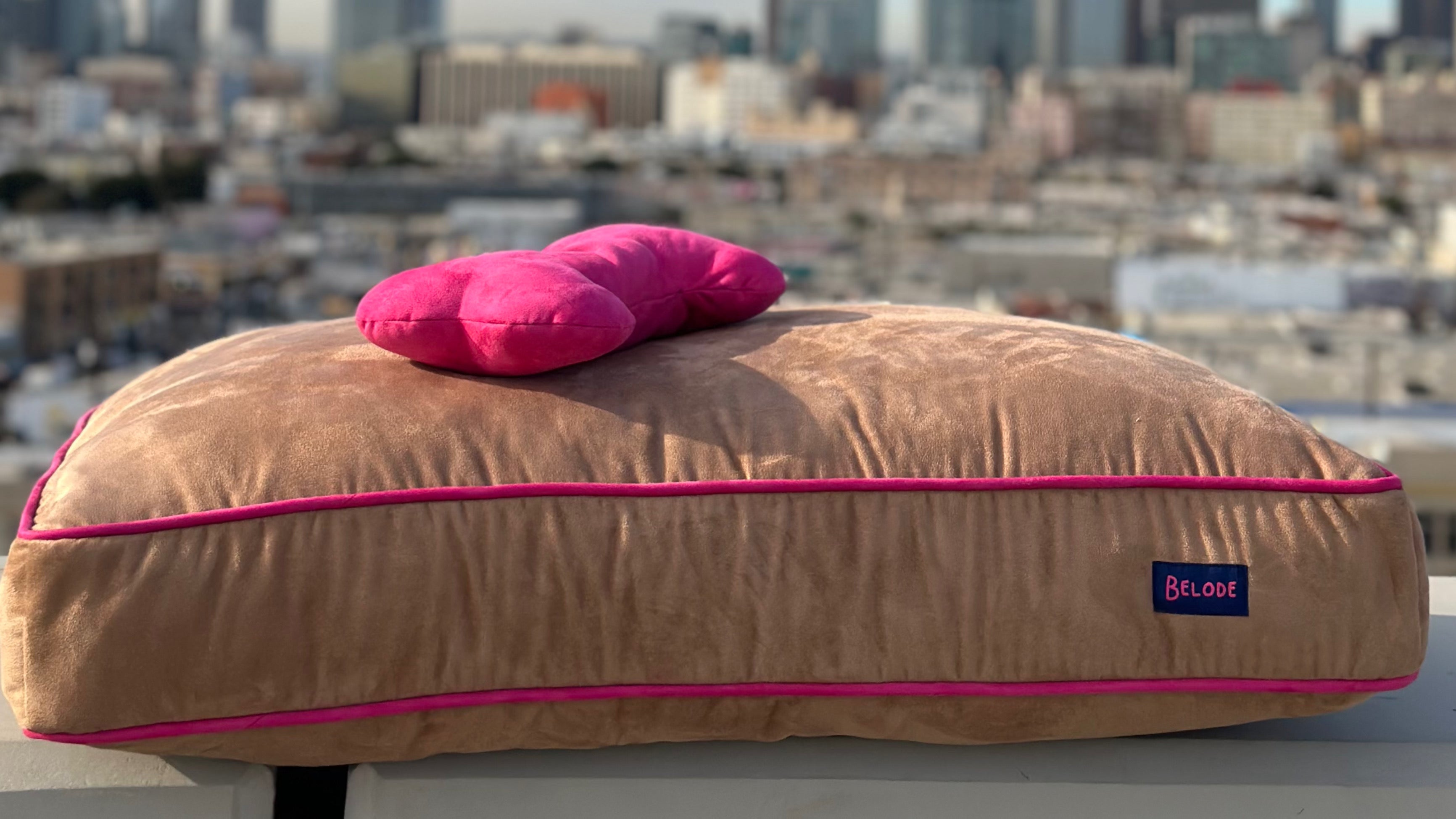 MOCHA MOUSSE DOG BED WITH PINK EDGING